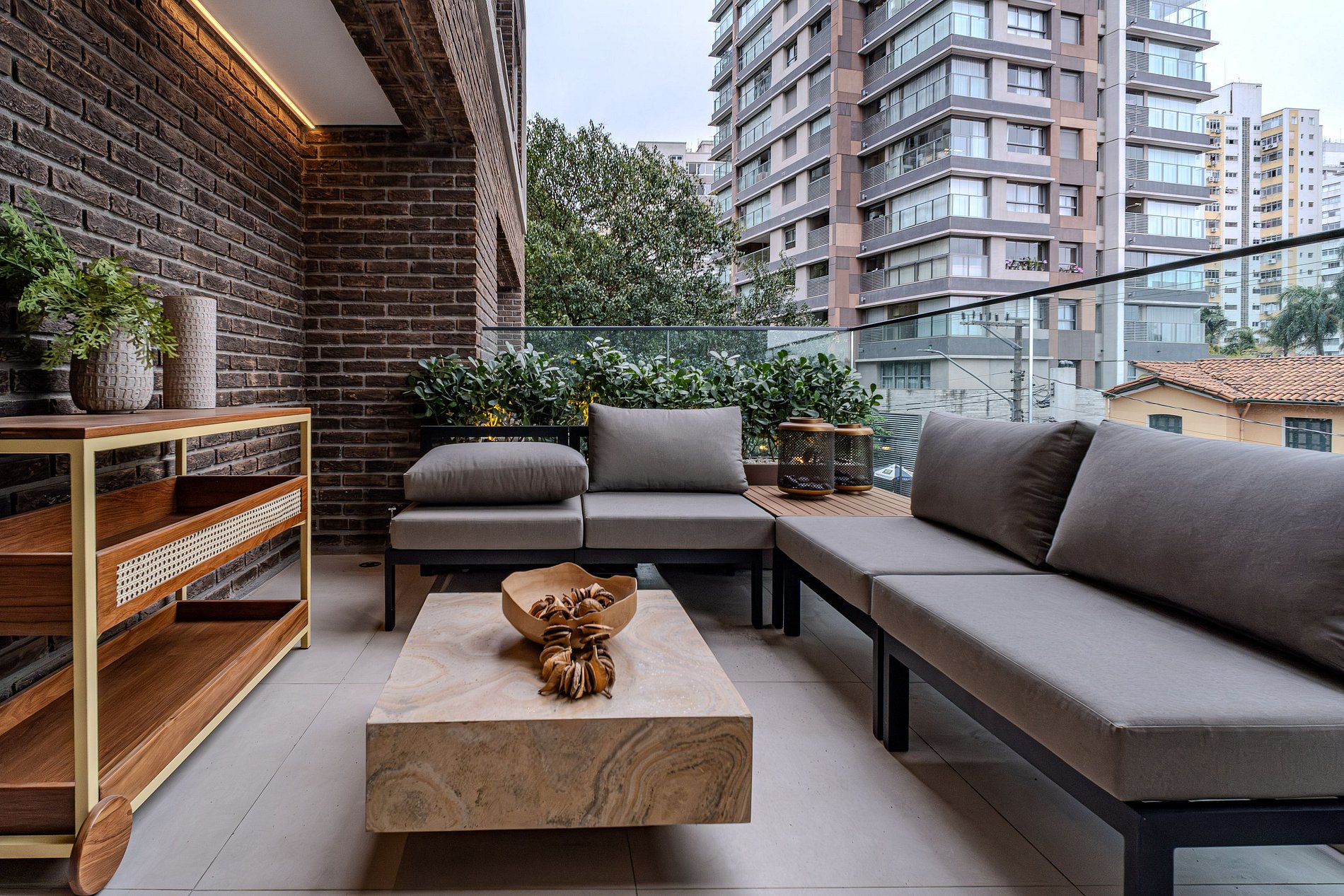 Lounge sofisticado nas áreas comuns, com sofás e ambientes aconchegantes.