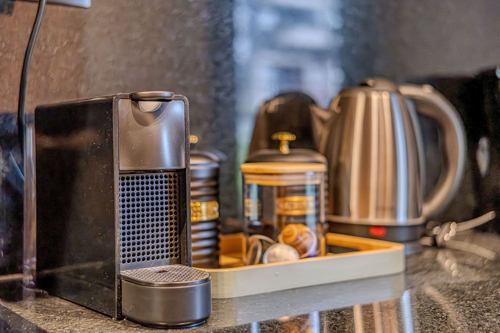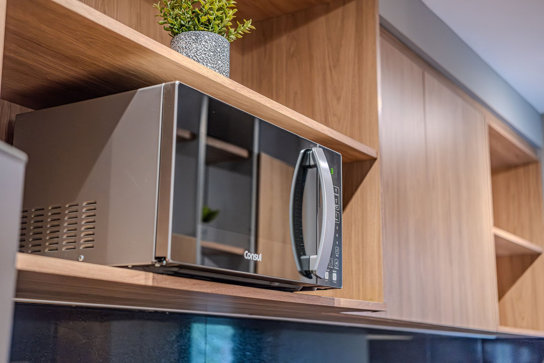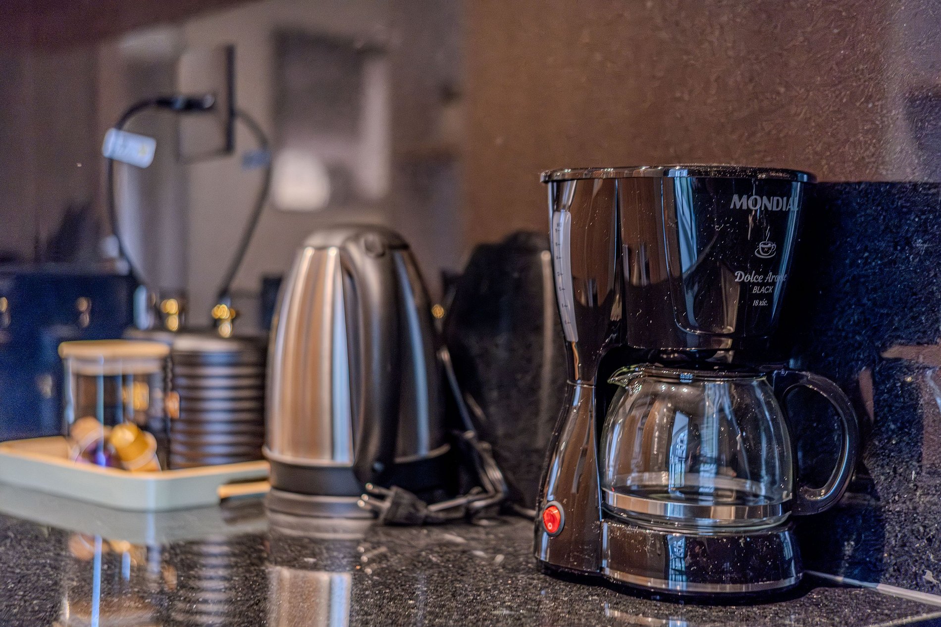 - Itens básicos de cozinha (micro-ondas, utensílios essenciais, cafeteira Nespresso).