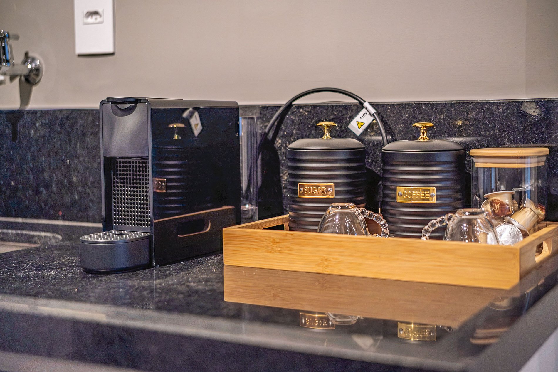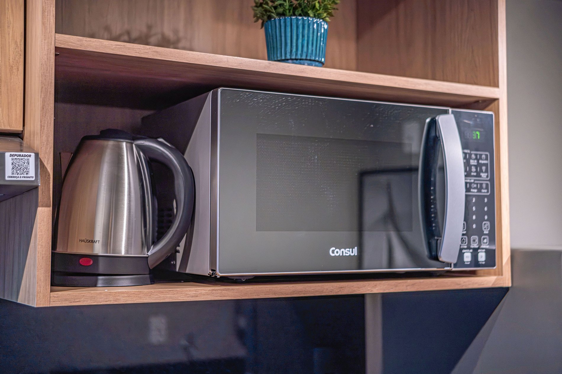- Itens básicos de cozinha (microondas, utensílios essenciais, cafeteira Nespresso)