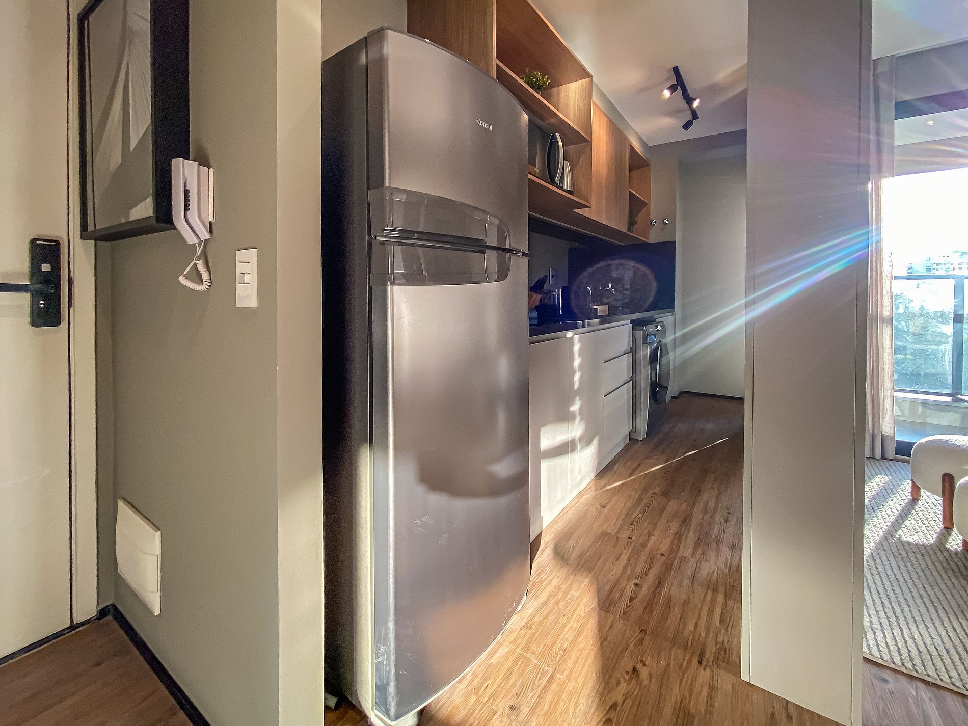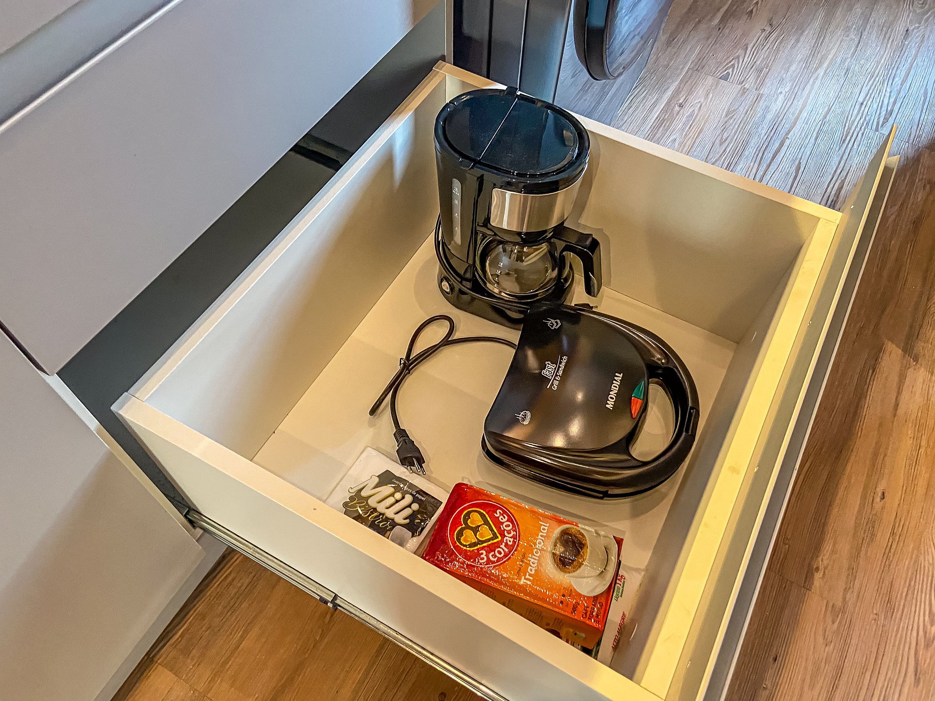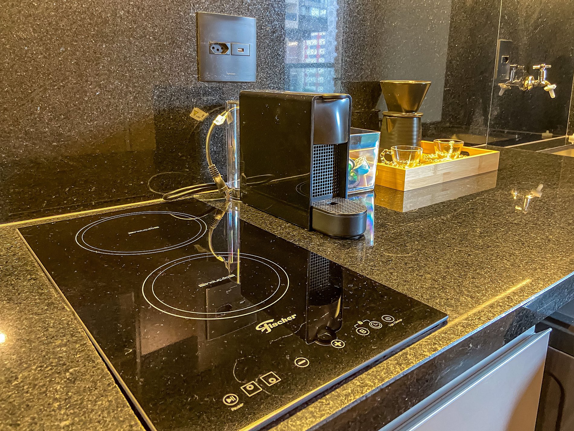 - Itens básicos de cozinha (microondas, utensílios essenciais, cafeteira Nespresso)