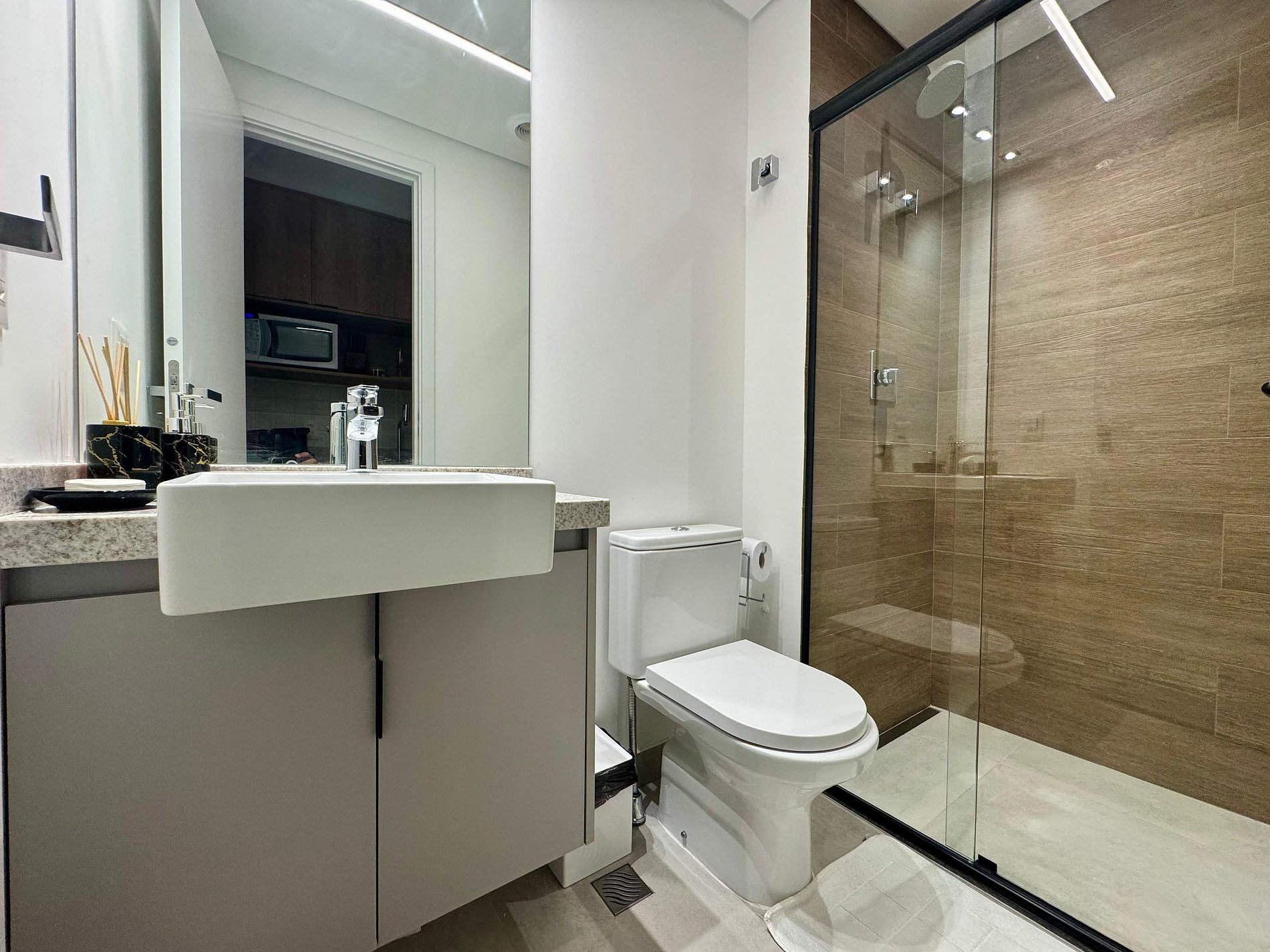 O apartamento possui vista livre, um espaço aconchegante com roupas de cama e toalhas da melhor qualidade, chuveiro a gás com uma ducha incrível e um atendimento 24 horas com suporte a tudo que precisar.
