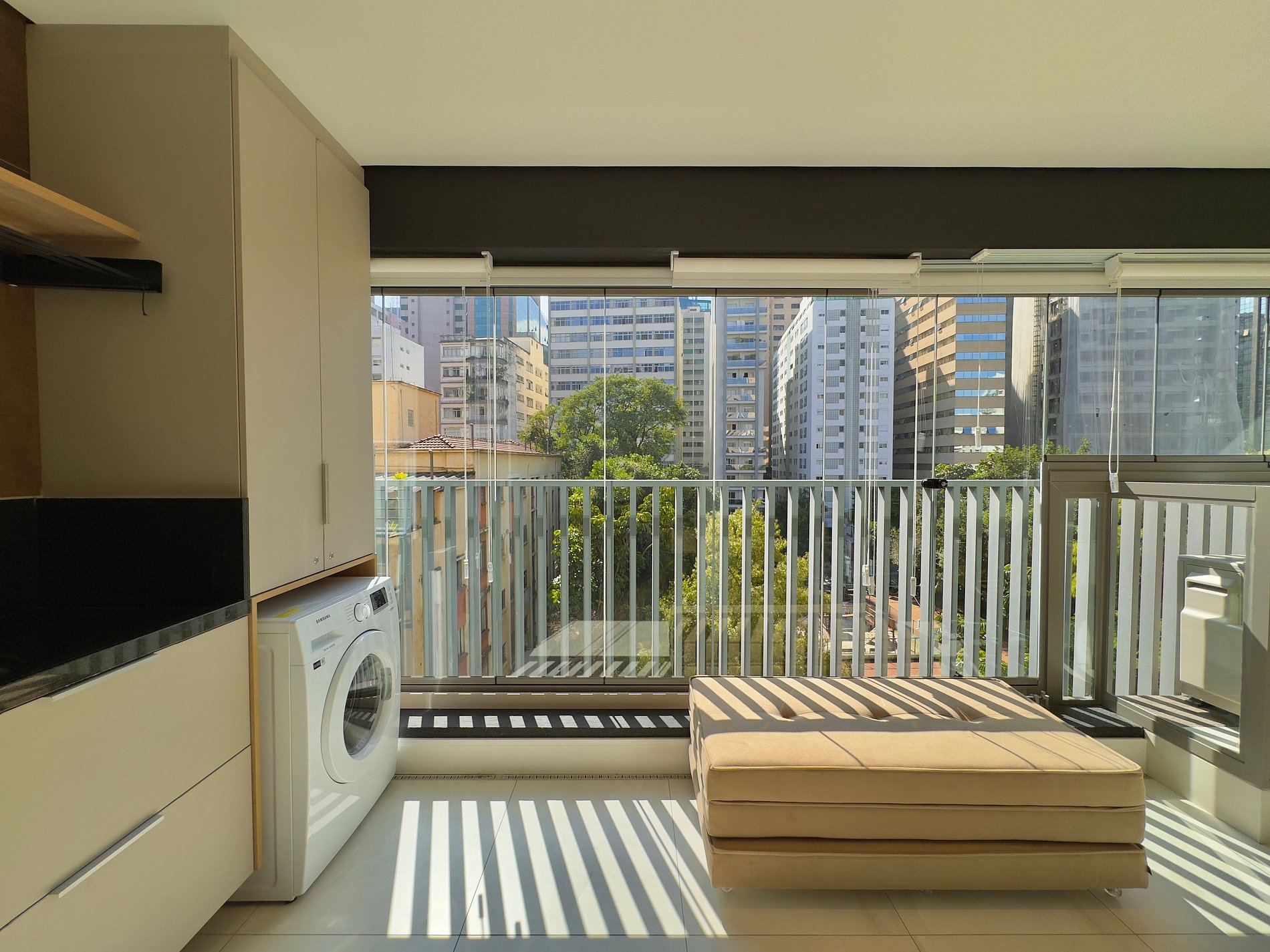 Apto novo, reformado por arquiteto e com detalhes de acabamento de muito bom gosto, como mármore bege, piso em porcelanato e ar-condicionado em todos os cômodos. A vista para o parque interno, com sol da manhã na varanda, possibilita um café da manhã com ar de interior, enquanto o ambiente silencioso completa o charme e o bem-estar que este apartamento oferece. O apartamento conta ainda com máquina de lavar, trazendo mais praticidade à sua estadia.