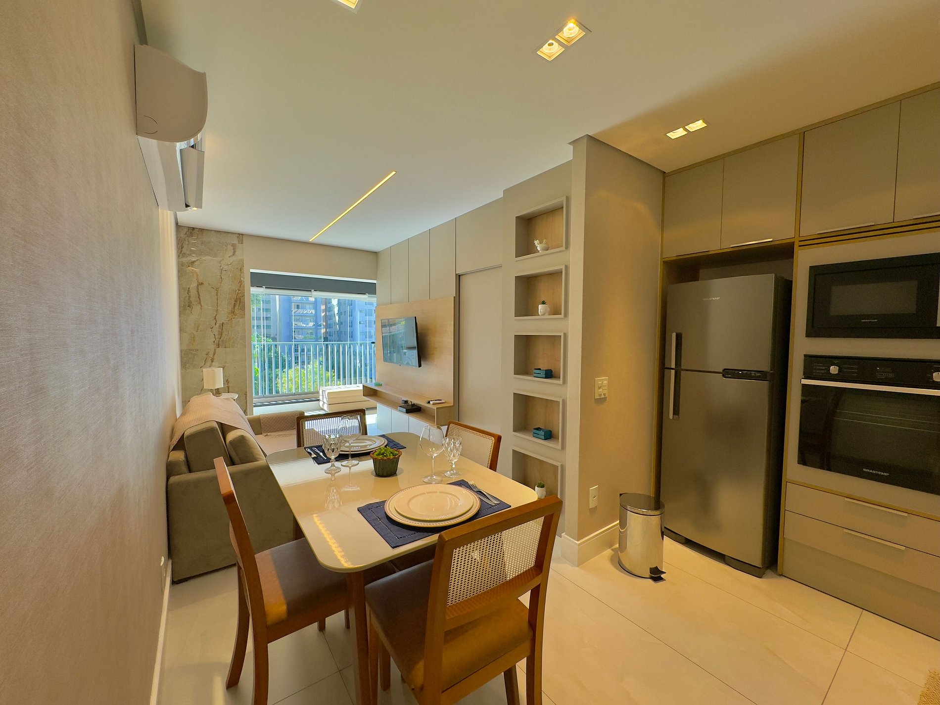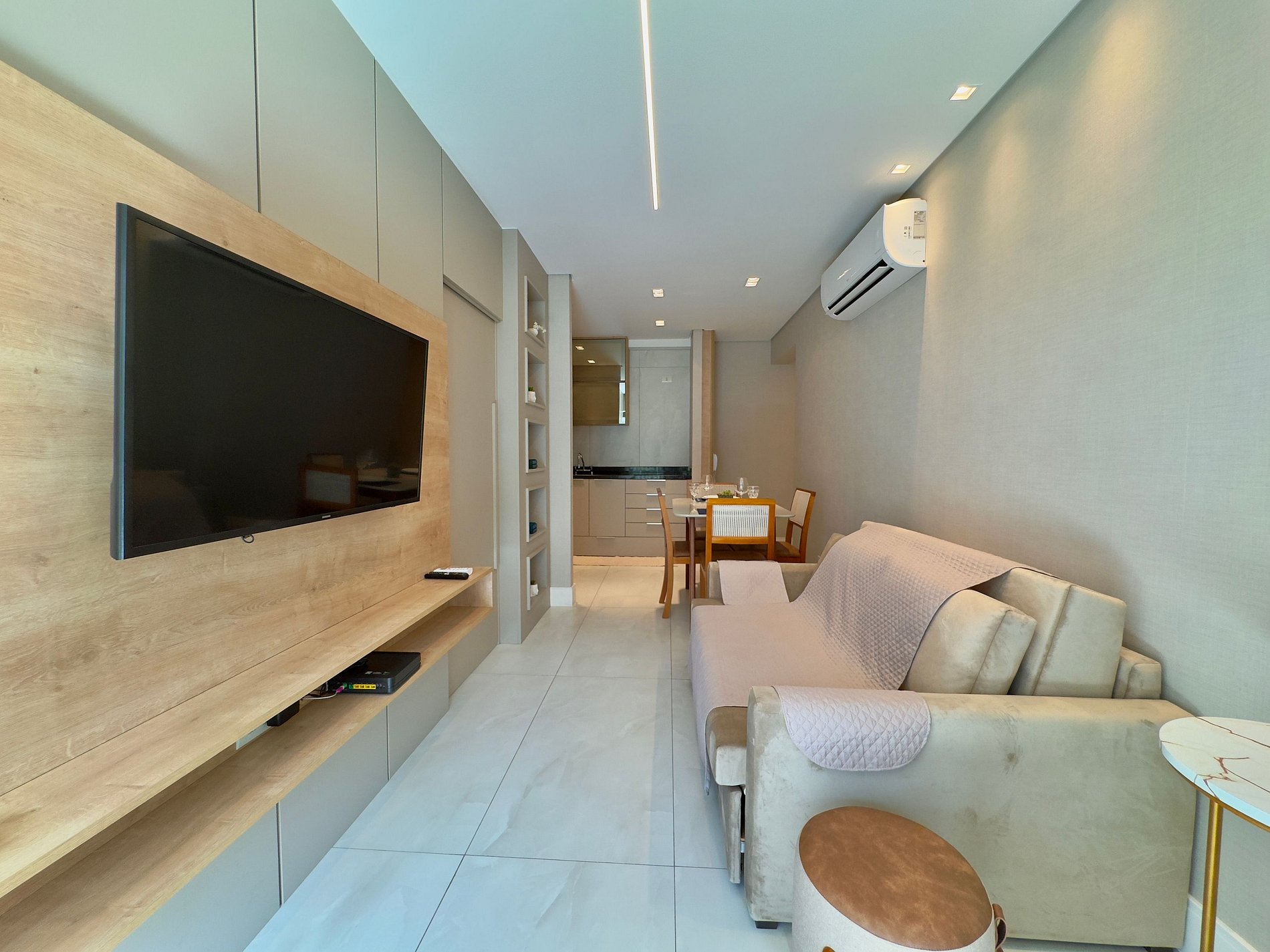 O ambiente foi cuidadosamente pensado para oferecer praticidade e bem-estar, com móveis funcionais, decoração elegante, cozinha equipada, ar-condicionado e Wi-Fi de alta velocidade. Os hóspedes terão à disposição cama confortável, enxoval de qualidade e itens essenciais para uma estada tranquila e agradável.