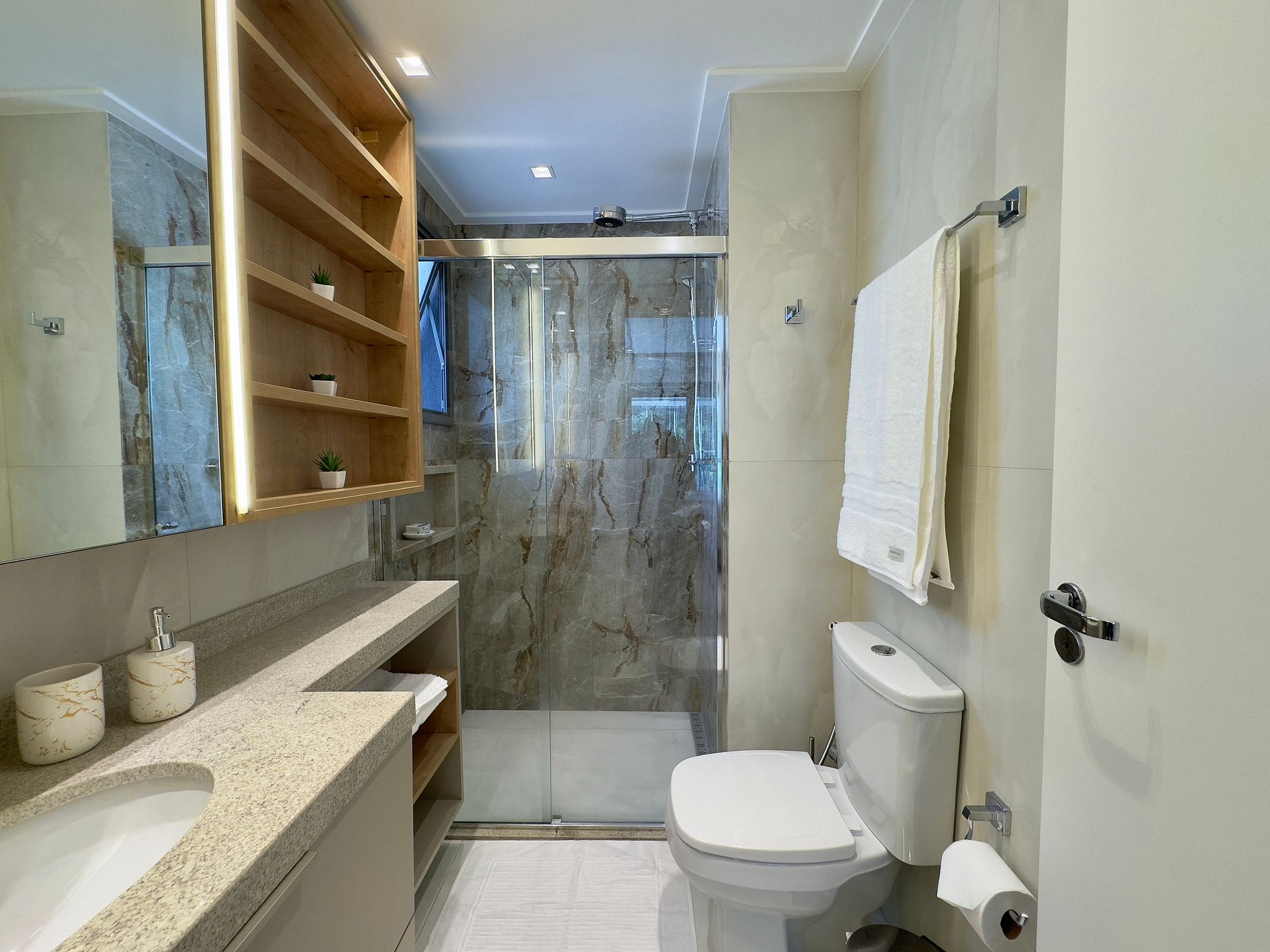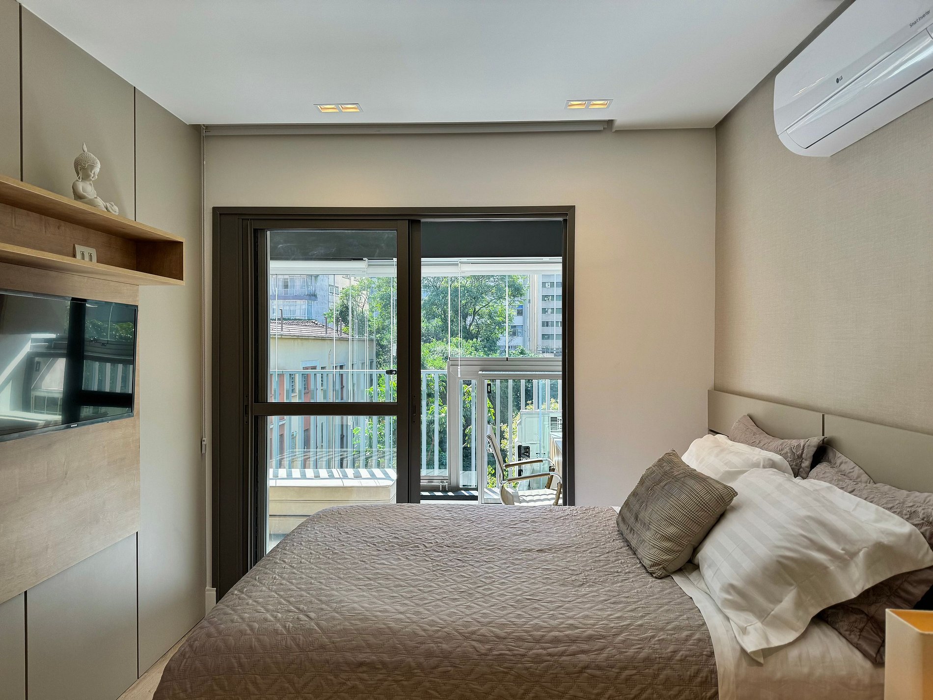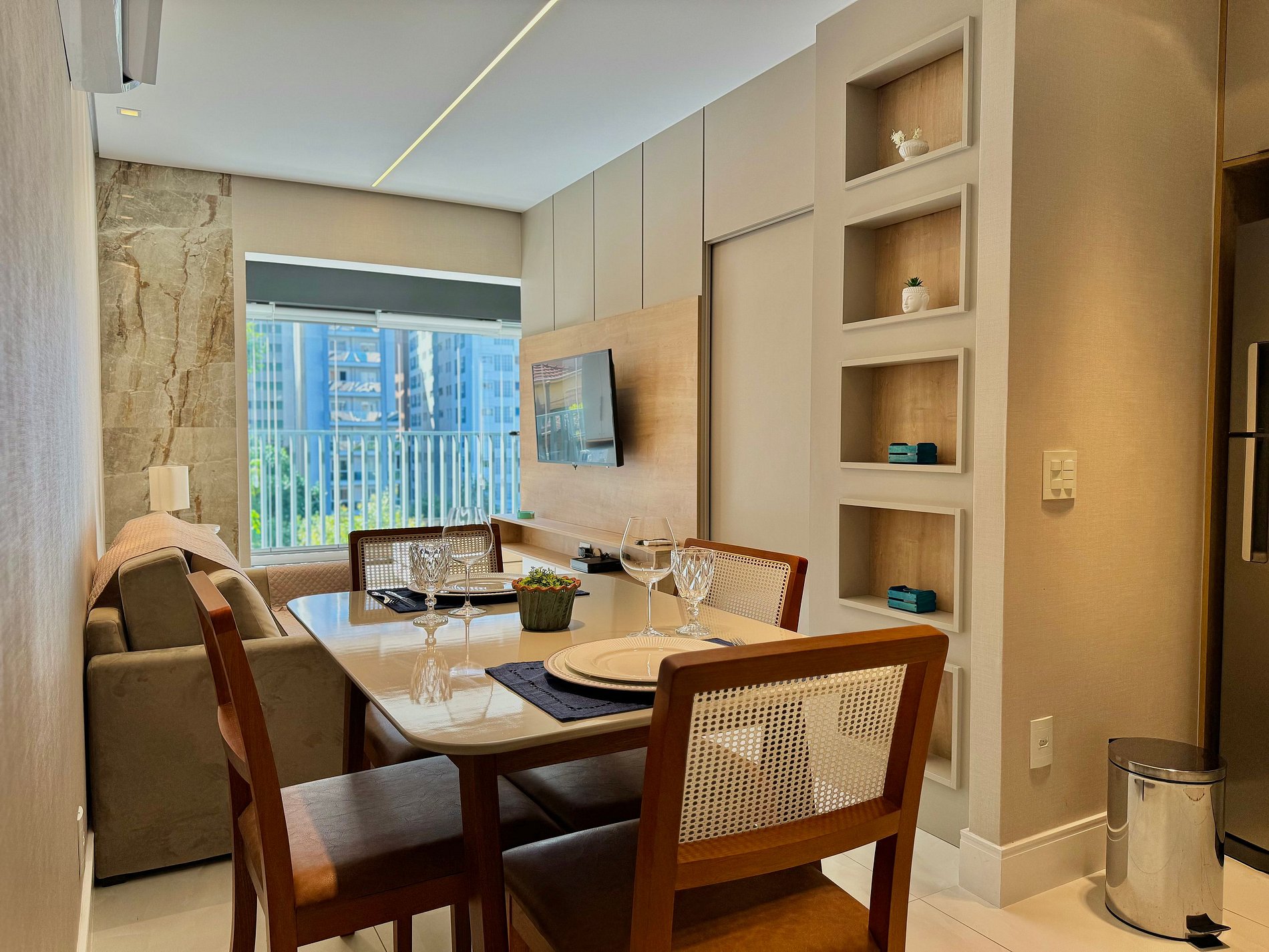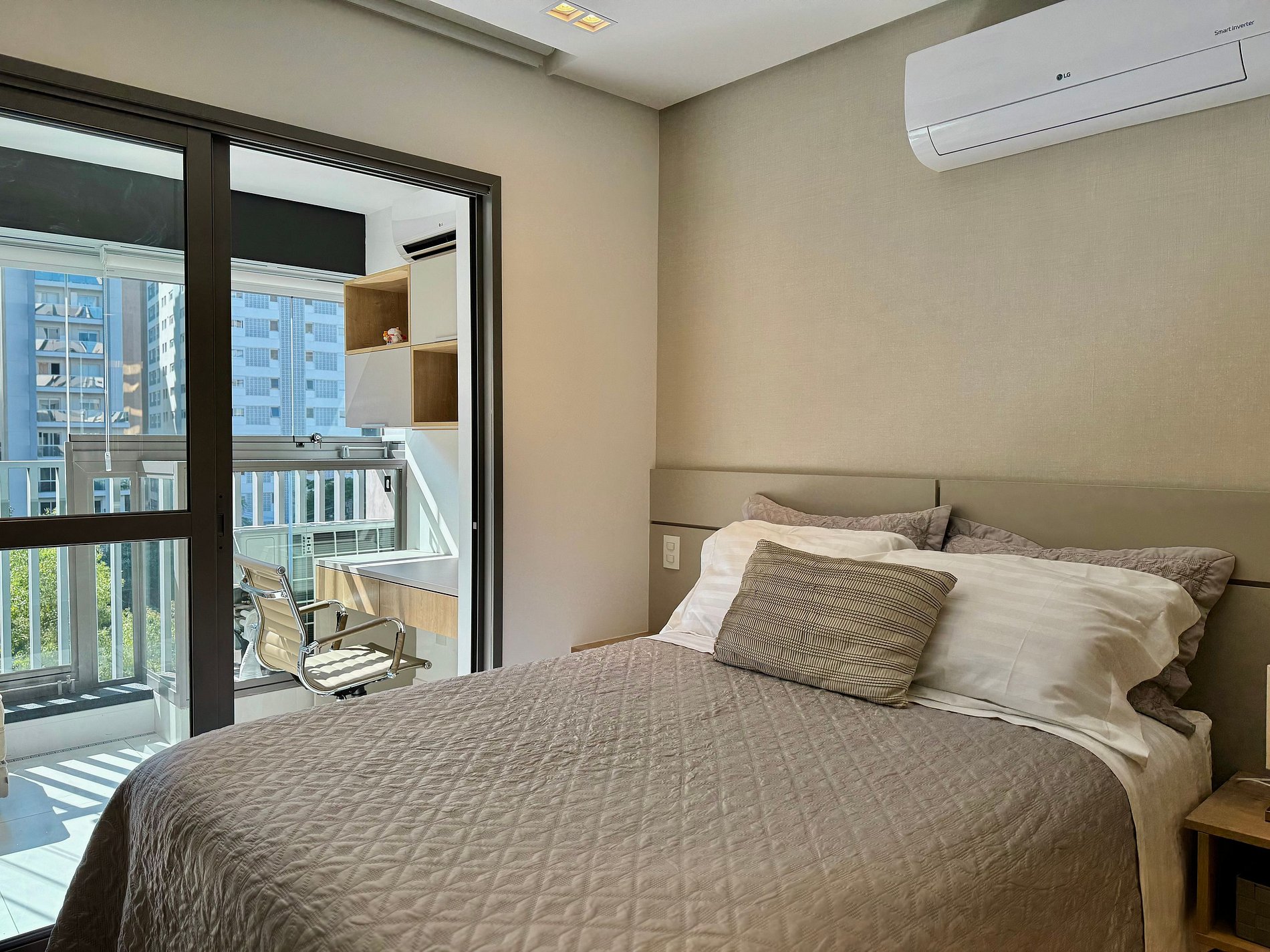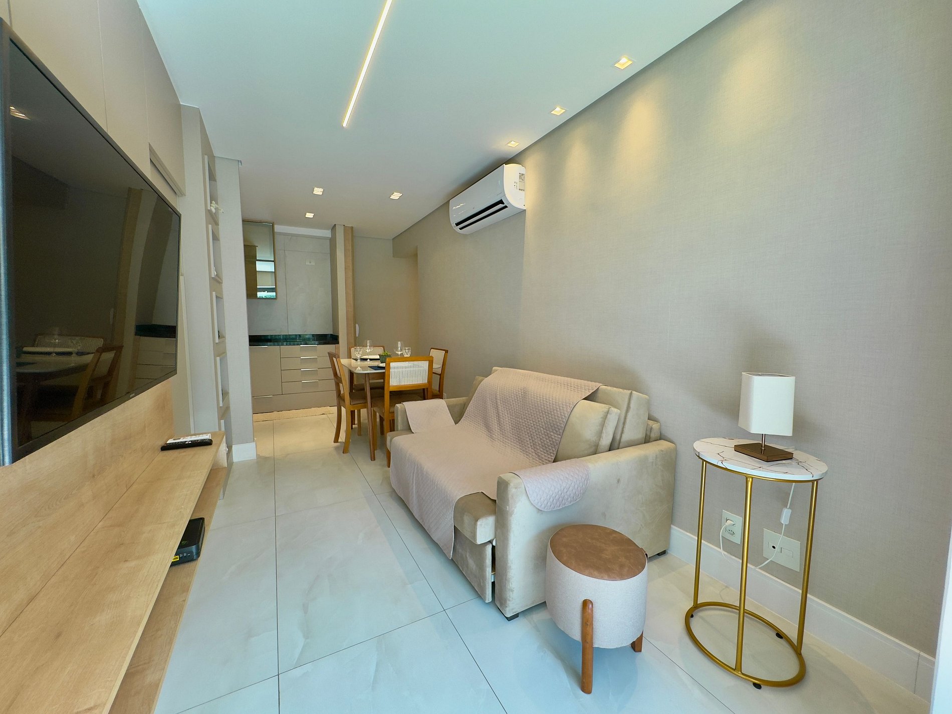 O ambiente foi cuidadosamente pensado para oferecer praticidade e bem-estar, com móveis funcionais, decoração elegante, cozinha equipada, ar-condicionado e Wi-Fi de alta velocidade. Os hóspedes terão à disposição cama confortável, enxoval de qualidade e itens essenciais para uma estada tranquila e agradável.