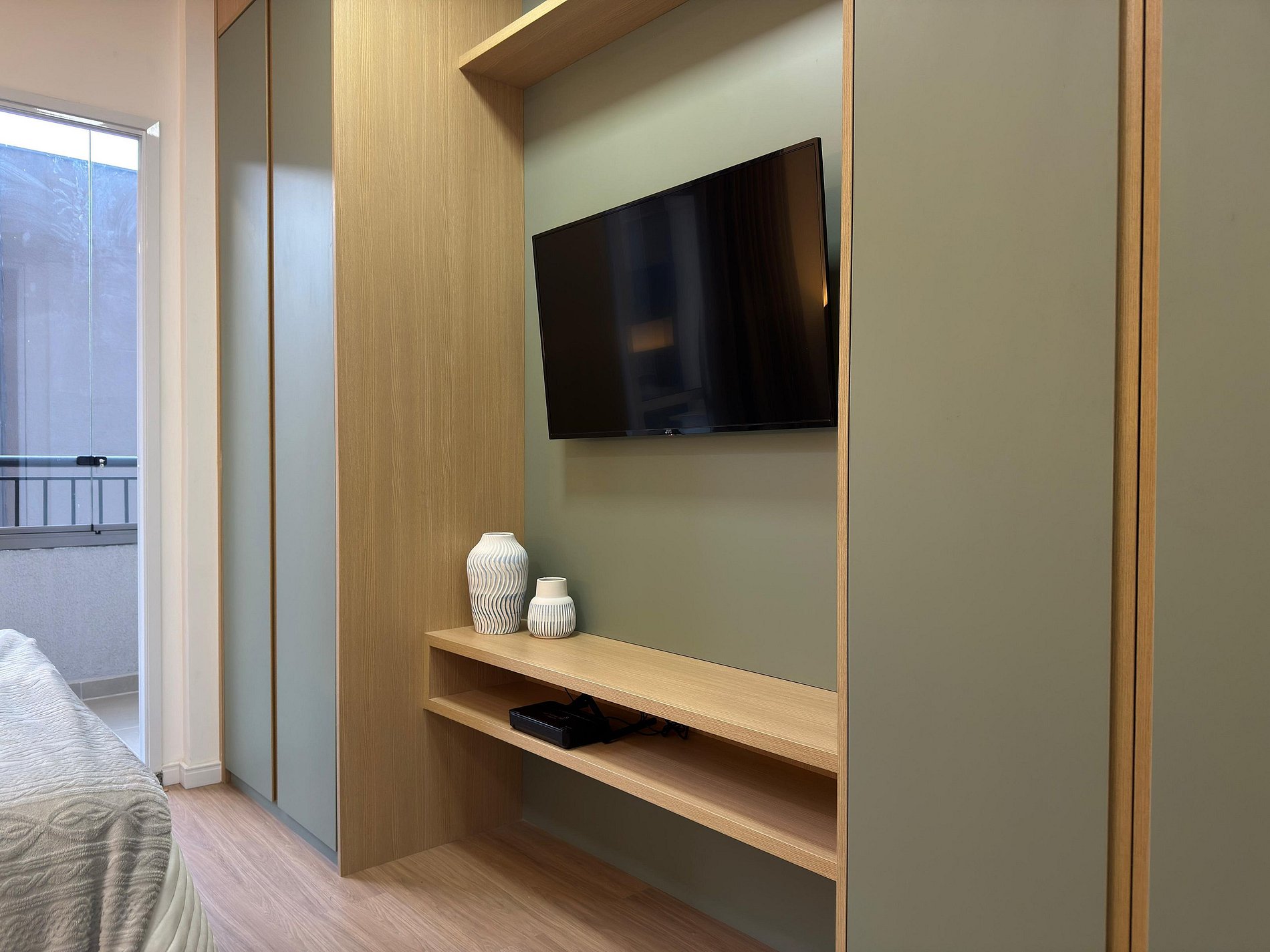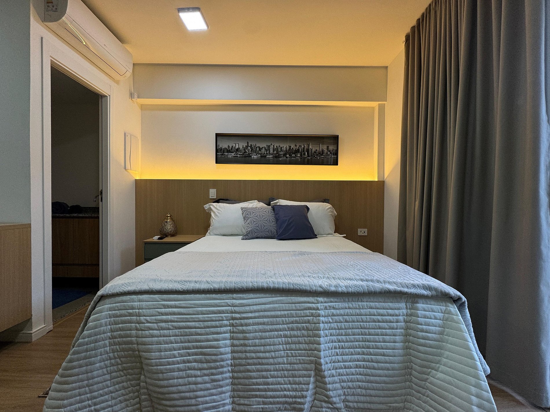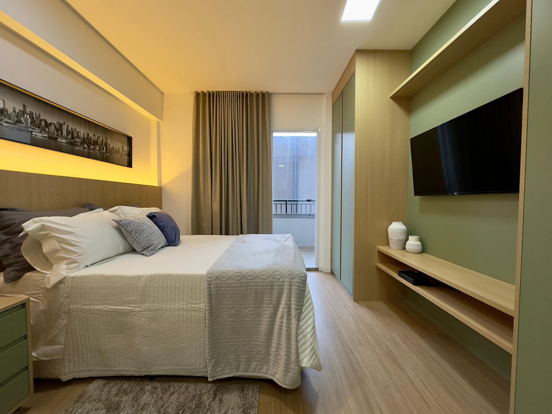 O apartamento possui varanda fechada com área privativa para estudos ou trabalho, cantinho do café e roupas de cama e toalhas que proporcionam conforto e um verdadeiro bem-estar.