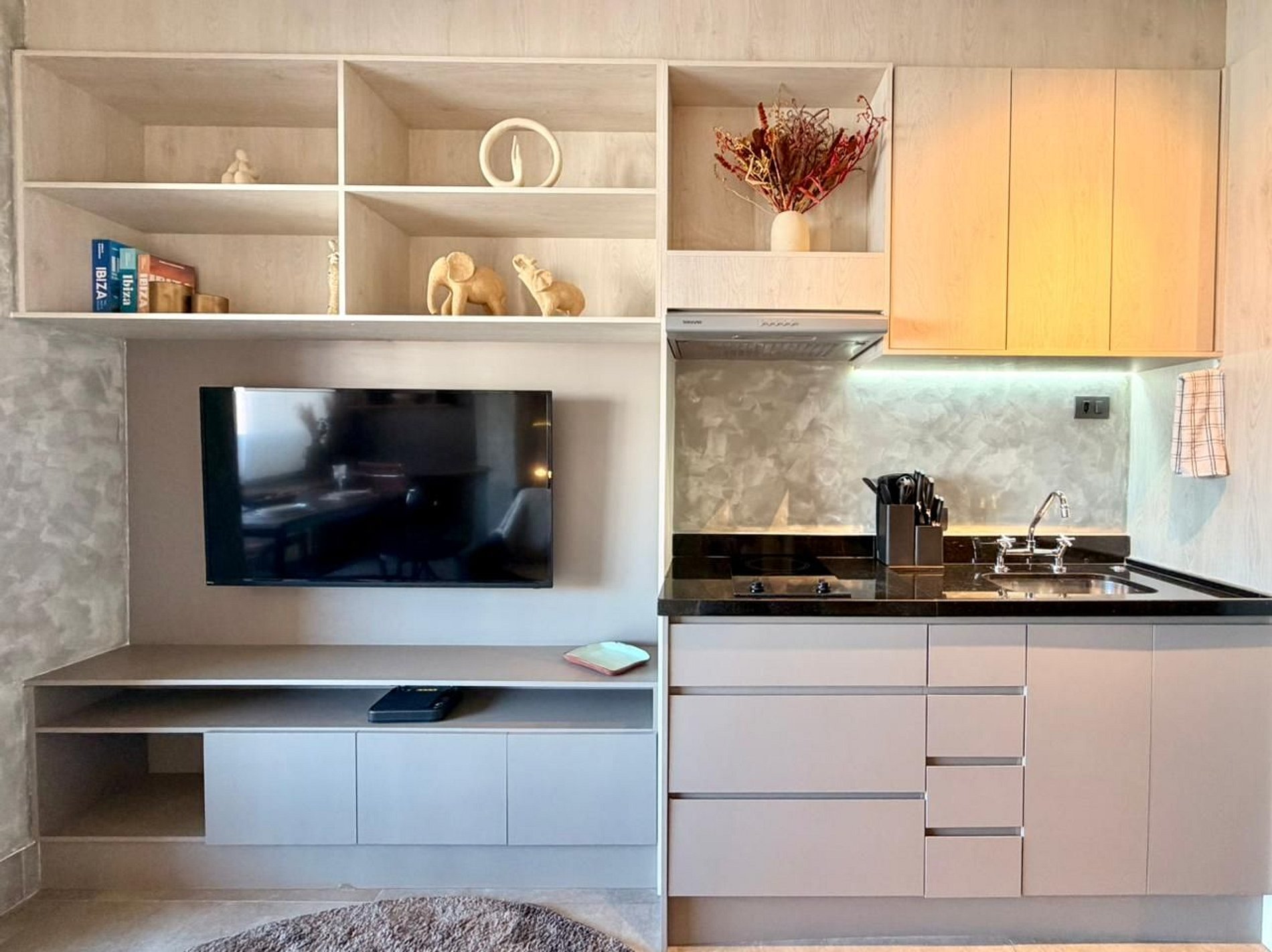 O espaço possui ambientes bem distribuídos que proporcionam conforto e funcionalidade, com quarto com divisória, sala de TV aconchegante, cozinha equipada e uma agradável varanda. A área interna é integrada à varanda, trazendo mais iluminação natural e uma sensação de amplitude ao espaço.