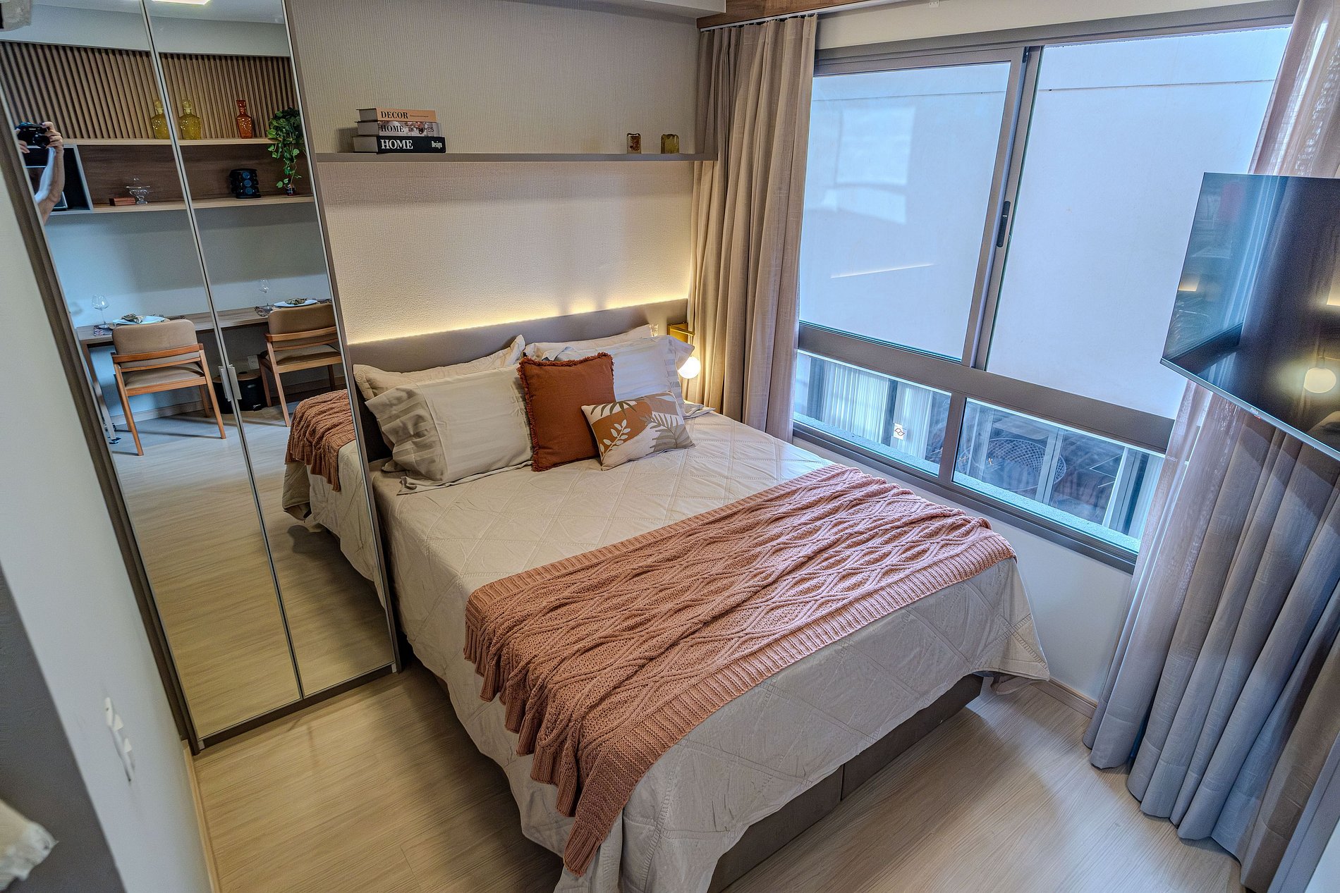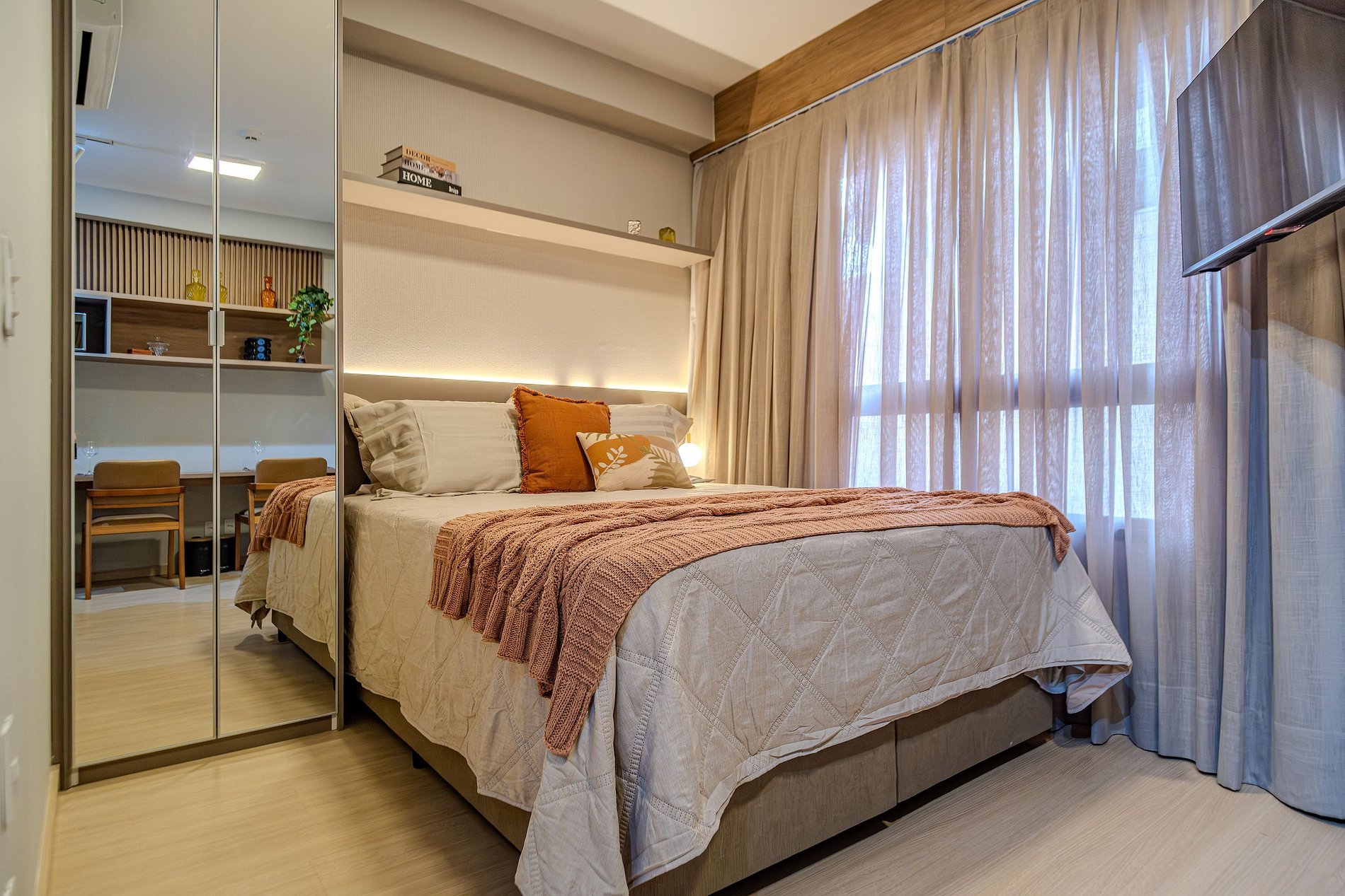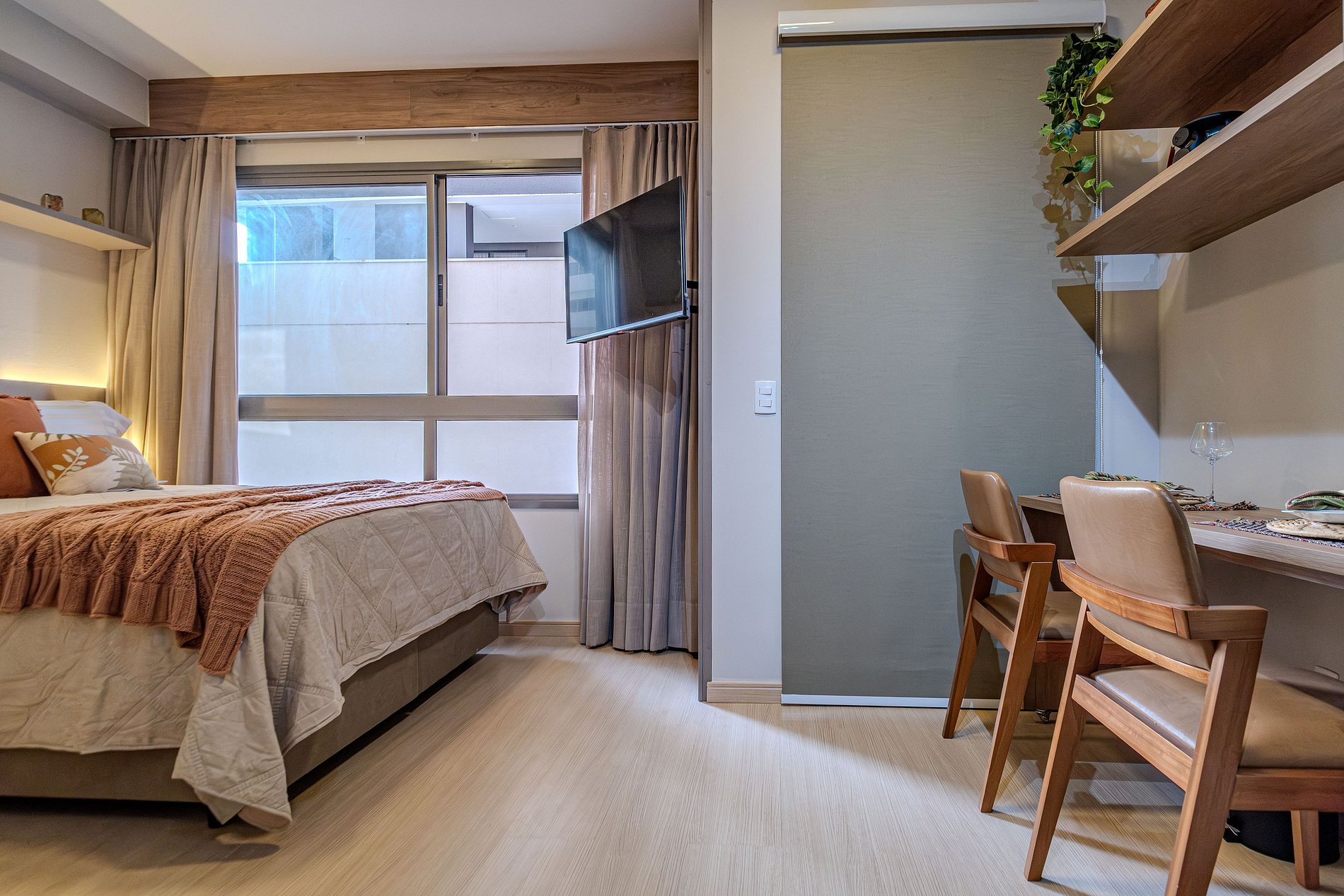 O apartamento foi recém decorado, de forma detalhada com muito bom gosto, buscando oferecer conforto com colchão queen de excelente qualidade, roupas de cama com lençóis 100% algodão 400 fios e toalhas de fio egípcio. Possui cafeteira, secador de cabelo, tv smart, wi-fi e cozinha totalmente equipada além de estar muito bem iluminado para proporcionar estadia agradável e acolhedora.